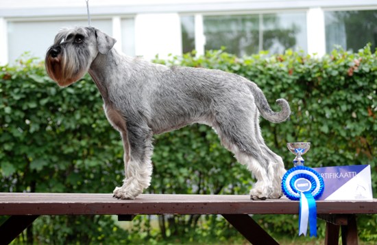luonnetesti: 167 p. Shows / Näyttelyt: 2*BB 3 / 2*PN 3 BB 4 / PN 4 CAC / SERT 3*res CAC / 3*vara SERT Obedience / Toko: Obedience degree, beginners class / Koulutustunnus alokasluokasta TK1 3rd place in schnauzer obedience competition 2012 / 3. sija rotumestaruus tokossa 2012