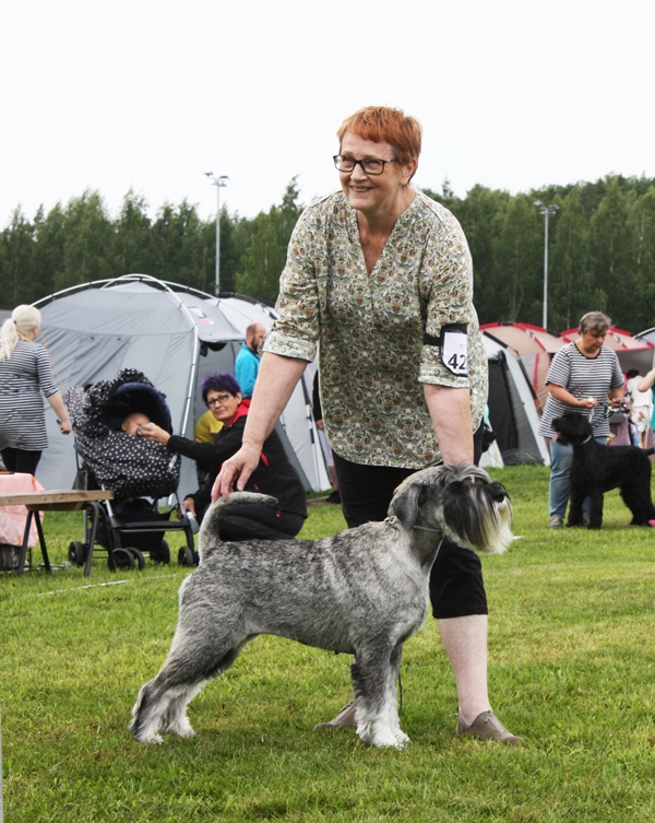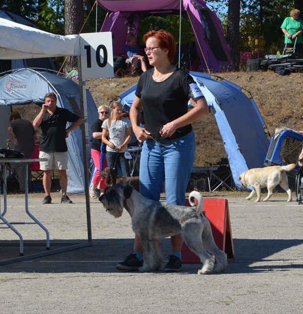 Näyttelyuutisia /Show news Kaarina erikoisnäyttely / Kaarina Scnauzer Speciality Tuomari Sarah Hattrell, Iso-Britannia / Judge Sarah Hattrell, Great Britain Eipä's Himohe JUN ERI 3 / JUN EXC 3 Eipä's Eukotella VET ERI 3 SA / VET EXC3 CQ Delonnix Cormick VAL ERI 2 SA PU2 / BM 2 Hirmu kolea ja kostea päivä, mutta mukavaa oli silti. Kiitos Hanna-Mari handlauksesta ja Markku ja Hanna-Mari majoituksesta. Kiitos Lassi ja Mervi muonituksesta. Markulle ja Lassille kiitos kuvista. Olette mahtavia! ![]() Ronja vauhdissa Kuva Lassi Teittinen ![]() Ronja seisoo Kuva Lassi Teittinen ![]() Nyyti ravaa Kuva Lassi Teittinen ![]() Nyyti veteraaniluokassa arvioitavana Kuva Lassi Teittinen ![]() Hopon komeaa menoa sateessa Kuva Lassi Teittinen ![]() Hopon seisoessa tuuli tuiversi tukan taakse Kuva Lassi Teittinen |