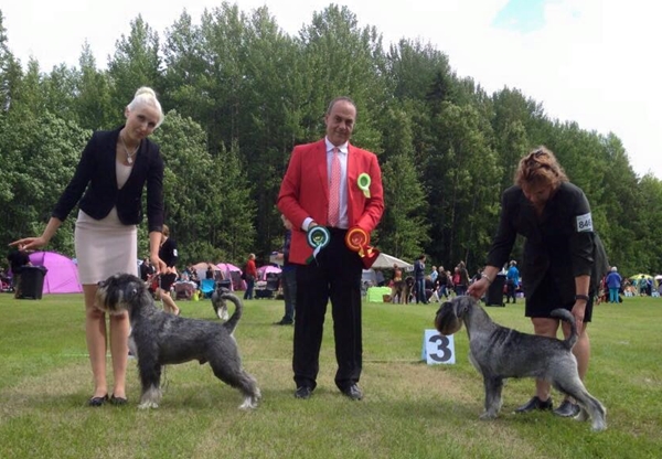 Näyttelyuutisia / Show News Heinola Kr / National DS Heinola Tuomari Patric Ragnarson, Ruotsi / Judge Patric Ragnarson, Sweden Eipä's Ehdotella VET ERI1 SA PN2 ROP-VET / BB2, BOB-VET Eipä's Himohe JUN ERI1 SA PN3 Vara-SERT / BB3, Res-CAC Delonnix Cormick VAL ERI1 SA PU1 ROP / BOB Sekä Elli että Hopo valikoituivat jatkokilpailuissa kahdeksan parhaan joukkoon. Onnittelut omistajille, esittäjille ja trimmaajille, hienoa työtä! Elli ROP-VET Kouvolassa ja Heinolassa Kuva Markku Välilä Ronja narttujen kolmanneksi vara-sertillä Kuva Markku Välilä Hopo Heinolassa ROP Kuva Markku Välilä |