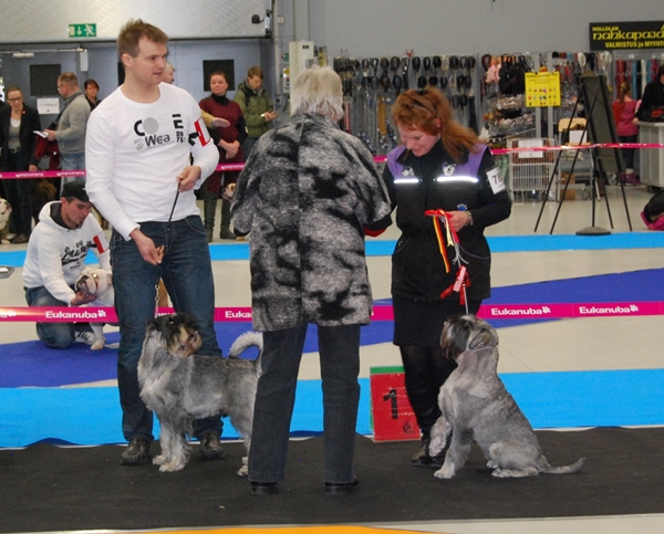Vuoden Snautseri -kilpailujen tulokset on julkaistu tänään Suomen Snautserikerhon vuosikokouksessa. Eipäs ollut tuloksia vuonna 2014 Vuoden Tokosnautseri 2. sijalla Eipä's Elämöidä "Monty", omistaja ja ohjaaja Eeva Karjalainen Vuoden Näyttelysnautseri narttu 8. sija Eipä's Ehdotella "Elli", omistaja Anne Mäkimaa Vuoden Näyttelysnautseri uros 2. sijalla Delonnix Cormick "Hopo", omistajat Eila Kettunen ja Hanna-Mari Piirainen Muitapa kisaan ei oltu ilmoitettukaan, ei myöskään osallistuttu kasvattajakilpailuun. Kiitos näille ahkerille harrastuksesta ja onnittelut sijoituksista. . . . . . . . . . . . . . Top Schnauzer of the Year 2013 in Finland competitions results Top Obedience Schnauzer 2nd place Eipä's Elämöidä "Monty", owner Eeva Karjalainen Top Show Schnauzer female 8th place is Eipä's Ehdotella "Elli", owner Anne Mäkimaa Top Show Schnauzer male 2nd place Delonnix Cormick "Hopo", owners Eila Kettunen and Hanna-Mari Piirainen |