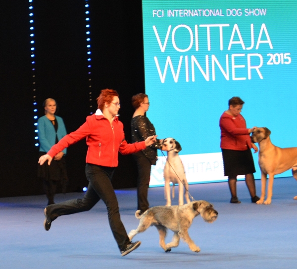 Näyttelyuutisia / Show News Voittaja 2015 KV / Finnish Winner 2015 IDS Tuomari Kresten Scheel, Tanska / Judge Kresten Scheel, Denmark Delonnix Cormick VAL ERI1 SA PU1 CACIB ROP Voittaja -15 / BOB CACIB Finnish Winner 2015 Upea veto Hanna-Marilta ja Hopolta noin 40 snautserin joukosta voittoon, Onnittelut! Hopon tytär Arctic Idols Domina kruunasi päivän ottamalla juniorinarttujen voiton ja Juniori Voittaja -15 tittelin 11 juniorin luokassa ja sijoittui narttujen neloseksi SERTin kera. Onnea omistajille ja kasvattajalle! Olen mielissäni, että olin paikalla näkemässä. Delonnix Cormick ROP Voittaja -15 ja VSP Möllerhaus Titania Treasure Kuva Markku Välilä Hopo ja Hanna-Mari kiitävät ryhmäkehään Kuva Markku Välilä Isä ja tytär Voittajat, Delonnix Cormick ja Arctic Idols Domina Kuva Markku Välilä |