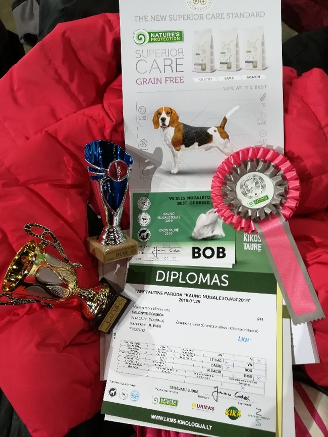 Näyttelyuutisia / Show News Liettua, Kaunas, Voittaja KV nly / Lithuania, Kaunas, Winner IDS Tuomari Francesco Cochetti, Italia / Judge Francesco Cochetti, Italy Delonnix Cormick VAL ERI1 SA PU1 SERT CACIB ROP LT MVA BALT MVA Kaunas Voittaja 2019 / CAC CACIB BOB LT CH BALT CH and Kaunas Winner 2019 Owner, groomer and handler Hanna-Mari Välilä, onnittelut titteleistä! Liettua, Kaunas IDS / Lithuania Kaunas IDS Tuomari Tina Peixoto, Portugali / Judge Tina Peixoto Portugal Delonnix Cormick VAL EH / VG in CH class Onnittelut, tuottoisa reissu kokonaisuutena! ![]() Lauantain saaliin todistusaineistoa Kuva Hanna-Mari Välilä |