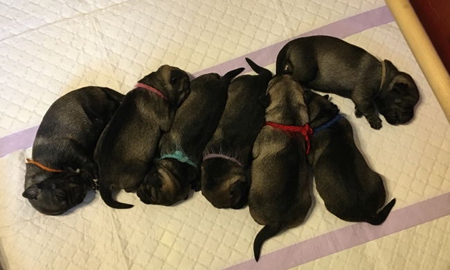 Onnittelut tänään 10 vuotta täyttäville H-pennuille! Hyvää 10v juhlapäivää ja hyviä vuosia monta lisää! Dani, Jaska, Huli, Niki, Rikke, Ronja ja Torsti. Lämmin ajatus Seitalle sinne jonnekin. Isot kiitokset perheille huolenpidosta ja voimia jatkoon. H- pennut 4 viikon ikäisinä Kuva Pirkko ja Hanna Veteli |